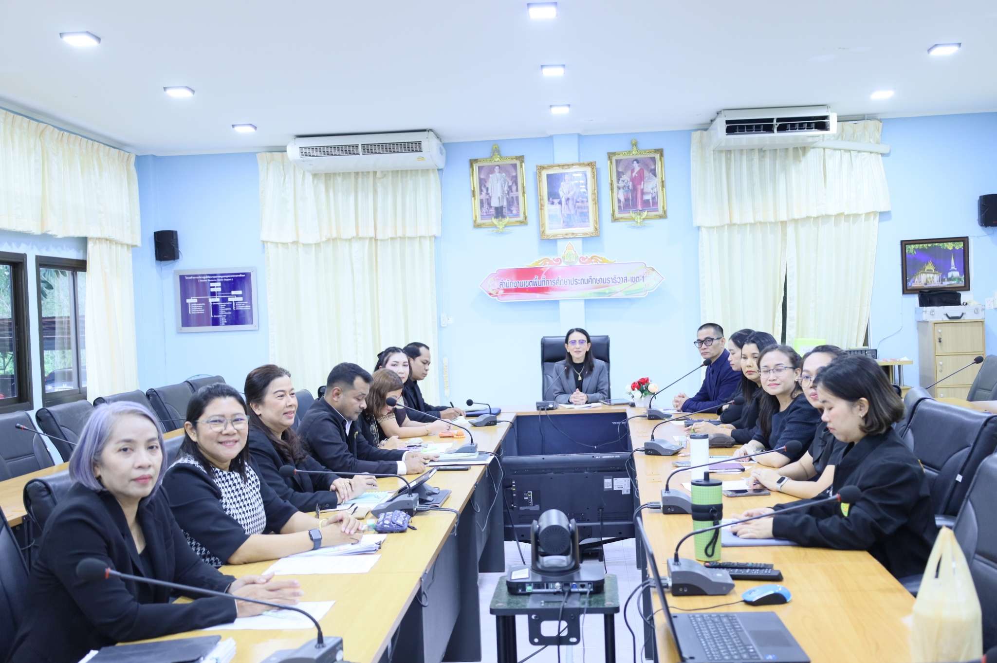 วันพฤหัสบดีที่ 8 มกราคม พ.ศ.2569 เวลา 08.00 น. ดร.สุธิภรณ์ ขนอม ผู้อำนวยการสำนักงานเขตพื้นที่การศึกษาประถมศึกษานราธิวาส เขต 1 พร้อมด้วยรองผู้อำนวยการสำนักงานเขตพื้นที่การศึกษาประถมศึกษานราธิวาส เขต 1 ผู้อำนวยการกลุ่มทุกกลุ่มและเจ้าหน้าที่ผู้รับผิดชอบ รับชมรายการพฤหัสเช้า ข่าว สพฐ. ครั้งที่ 1/2569 ผ่านระบบ video conference เพื่อรับทราบนโยบายการจัดการศึกษาและเพิ่มประสิทธิภาพในการดำเนินงานให้ได้ตามมาตรฐานการปฏิบัติงาน ณ ห้องประชุมบานบุรี สพป.นราธิวาส เขต 1