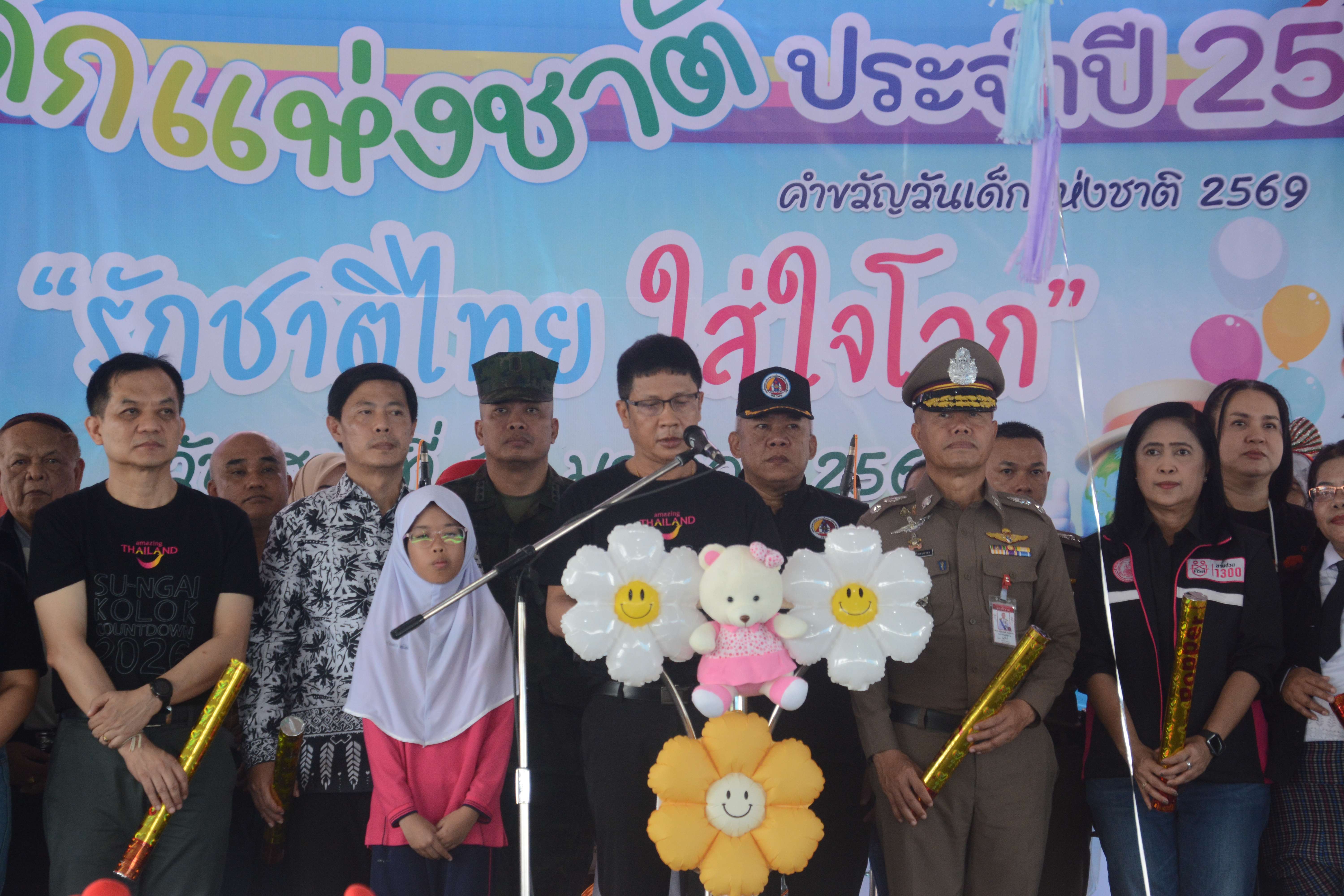 ผู้ว่าราชการจังหวัดนราธิวาส ประธานในการเปิดพิธีและอ่านสารวันเด็กของ นายอนุทิน ชาญวีรกูล นายกรัฐมนตรี